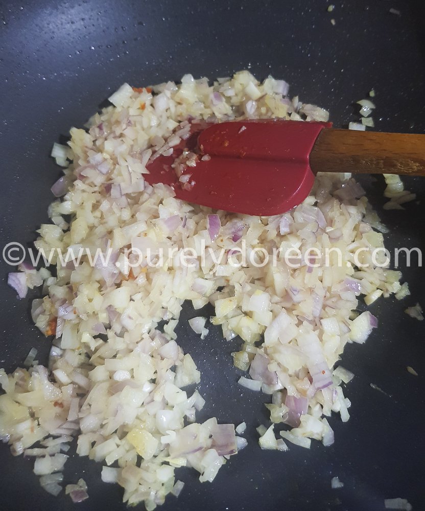 In the same pan heat some oil and add the chopped onion and let it fry till golden brown.