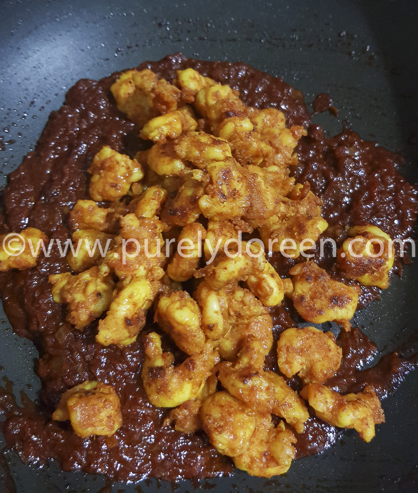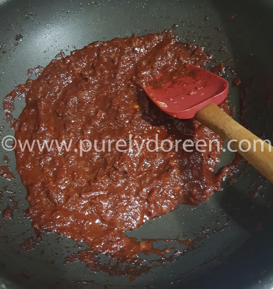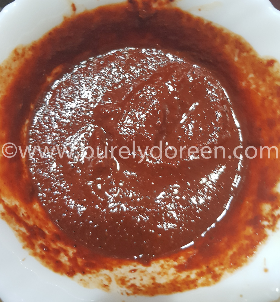 Meanwhile, add a tbsp. of water to 3 tbsp of Reacheado masala and mix it well and set it aside.