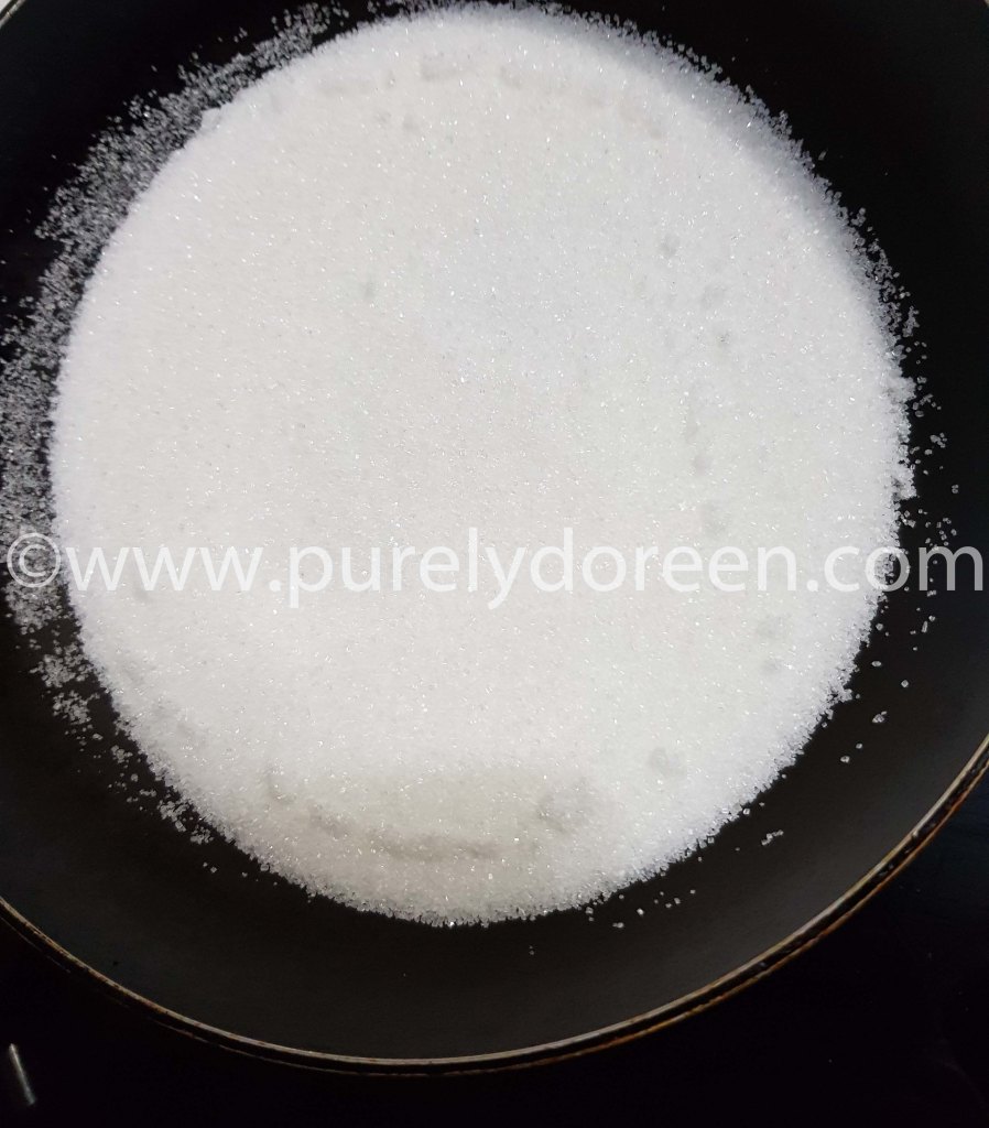(Tip: Do not stir the sugar, you can swirl the pan that way no sugar crystals will form)