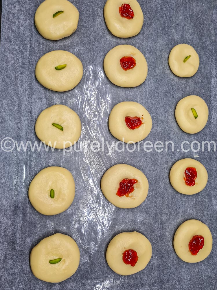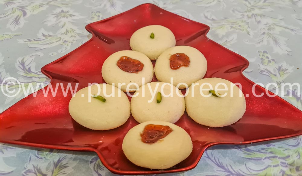In Goa, Nankhatai is also one of the sweet treats that families like to make and share with one another. For this recipe I have used slivered Pistachios and strawberry jam just to match with the festive season but you choose to use nuts or jam or even leave them plain. This Christmas though it’s different and for some a difficult one because of the Pandemic but we all are managing to pull through it. This Christmas I hope and pray we all get through this together safely.